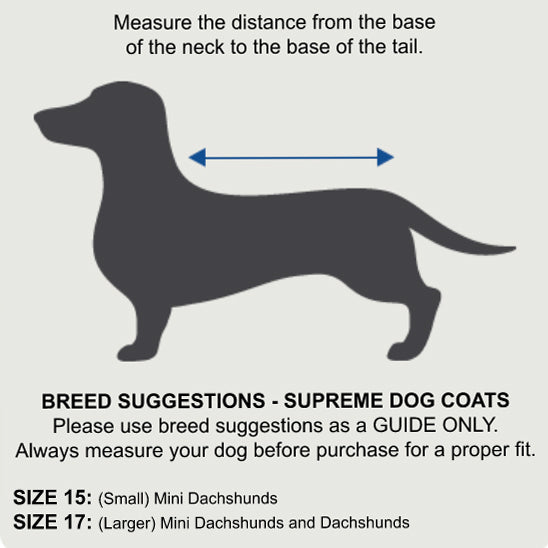 Zeez Supreme Dachshund Dog Coat Size Guide