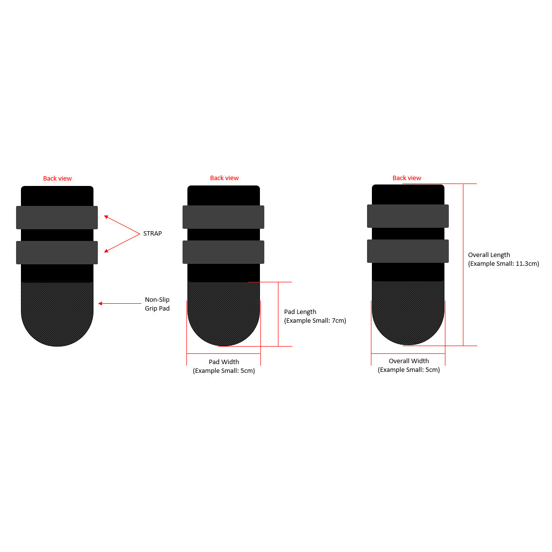 Note: All four paws should be measured and the largest measurement kept. The width of the paw should be slightly smaller than the width of the boot.