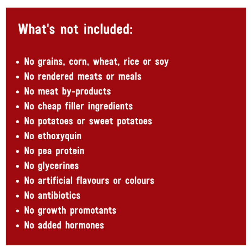 Beef - Meat (includes up to 3% finely ground bone), Beef - Liver, Lung, Tripe, New Zealand Green-Lipped Mussel, Lecithin, Chicory Inulin, Dried Kelp, Taurine, DL-Methionine, Naturally preserved with mixed tocopherols (Vitamin E)