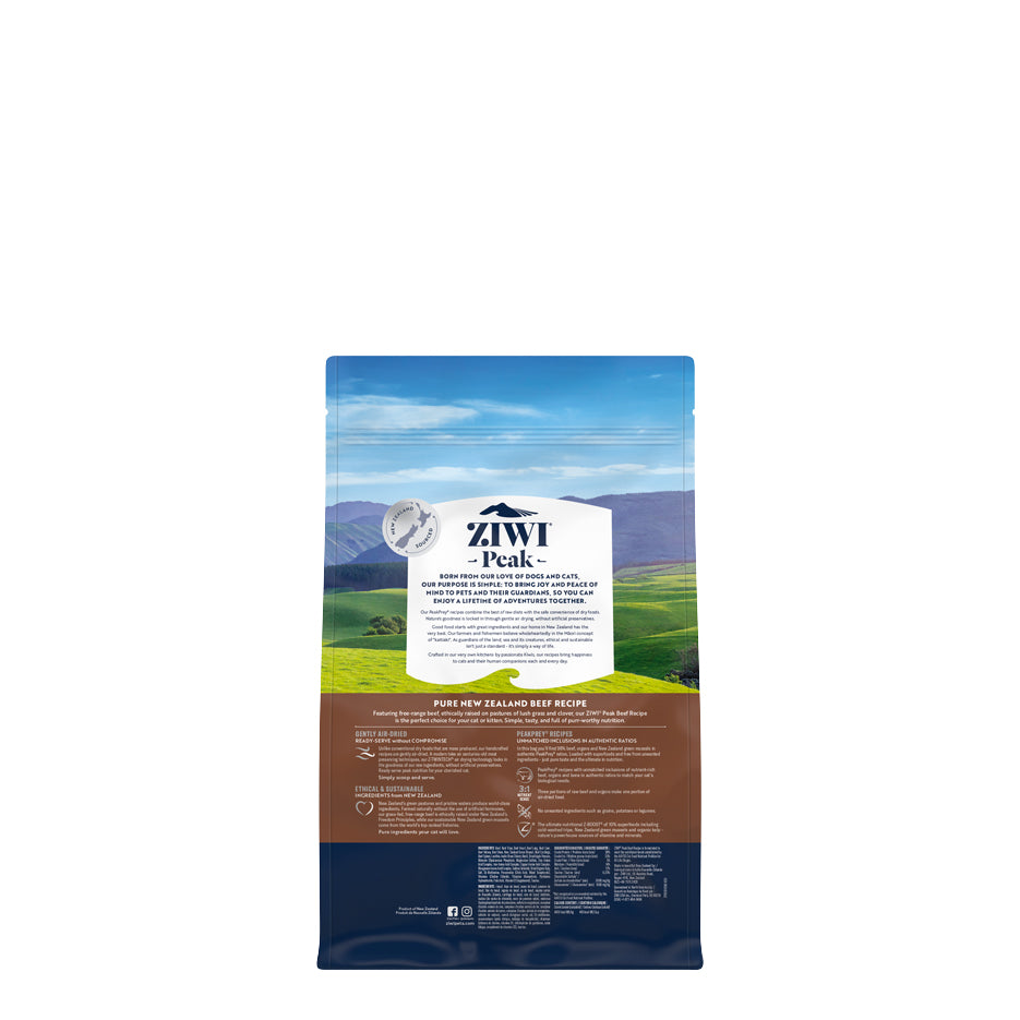 Ziwi Peak's Cat Air-Dried Beef Cuisine is a raw equivalent, premium dry cat food made from real 'MEAT' gently air-dried for convenience.