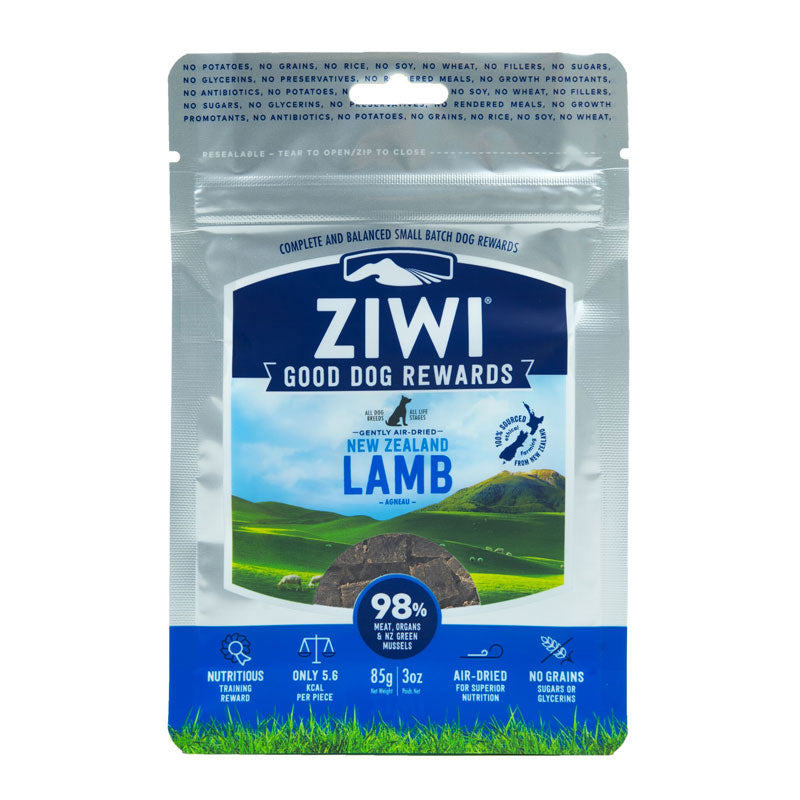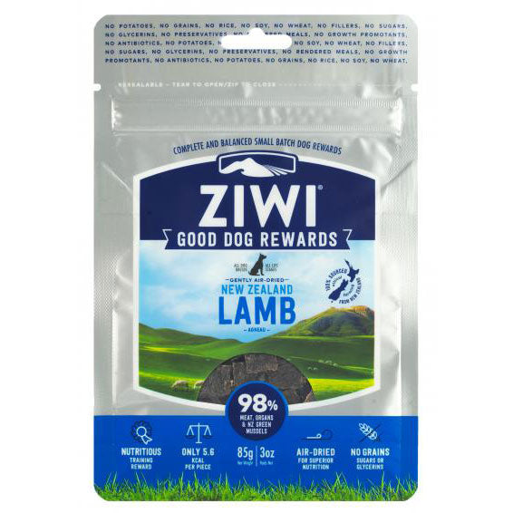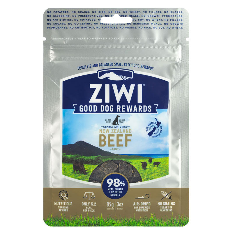 All of our Ziwi Good Dog Rewards contain 98% premium New Zealand Beef meat, including tripe, and Green Mussels. Like our other recipes, our Rewards are slowly and gently air-dried to preserve the best of our special New Zealand ingredients. The remainder of the recipe includes hand selected vitamins & minerals, sea kelps, chicory, & parsley.