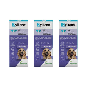 Zylkene is easy to give in one daily intake. The capsules contain a palatable, water soluble powder that appeals to both dogs and cats. They can be given whole or opened and the powder mixed with food, treats or liquids. Since Zylkene is taken orally and ingested, it is present wherever the pet goes, both inside and outside the house. Water should always be available to your pet.